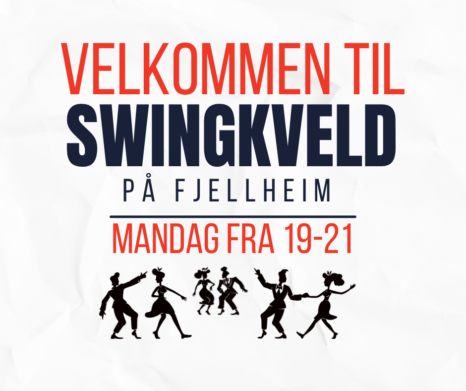 Det er swingkveld hver mandag fra 19-21. Kvelden er åpen for alle som har lyst til å danse swing. Kom alene eller sammen med venner. Her kan du lære nye turer av andre, og utvikle dansen om du vil, eller bare kose deg med hyggelig dansemusikk og god stemning. Det koster kr 50,- pr gang og det blir servert kaffe og frukt/snacks. Er det lenge siden du har danset, eller har du liten erfaring, så gjør det ikke noe. Møt opp og bli med andre som har vært her før. Stor takhøyde! Hjertelig velkomne!