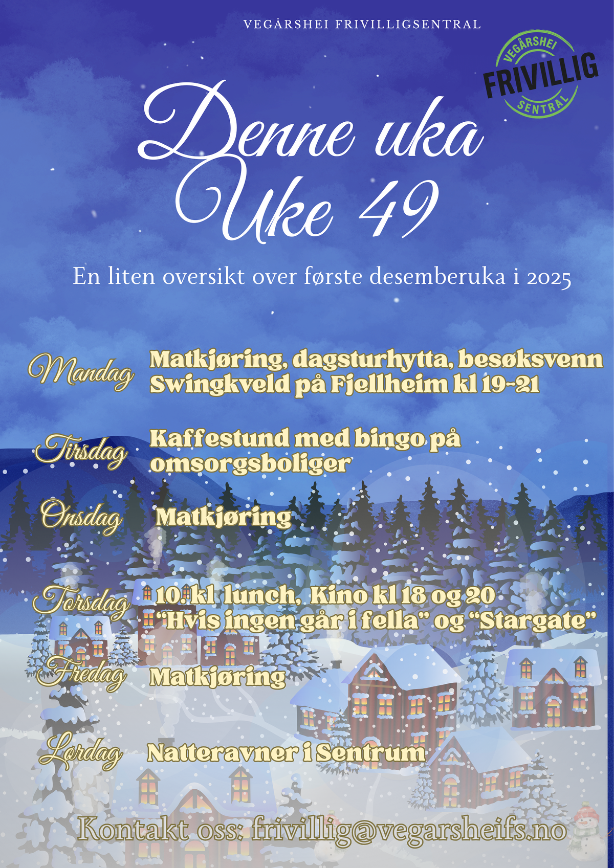Dersom du trenger å kontakte oss, kan du sende en mail til frivillig@vegarsheifs.no eller møte oss på kontoret på Fjellheim.